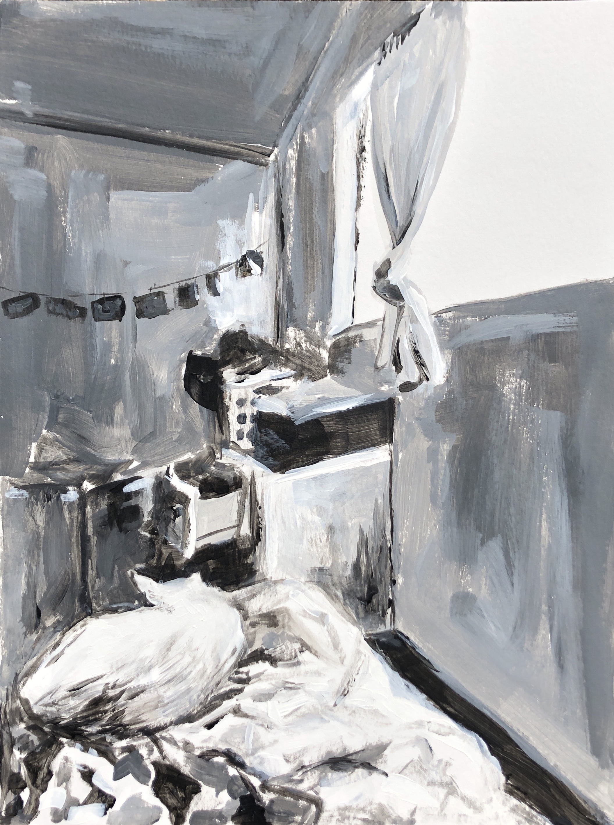 “Good Morning” was a small-run zine featuring original illustrations and a short fiction writing by Harmony. She painted, printed, stapled, trimmed, and distributed the copies herself. The zine was about the morning light and monotony. The original paintings were done with acrylic on bristol paper. The images are from the artists daily life while she lived in Los Angeles in 2019.